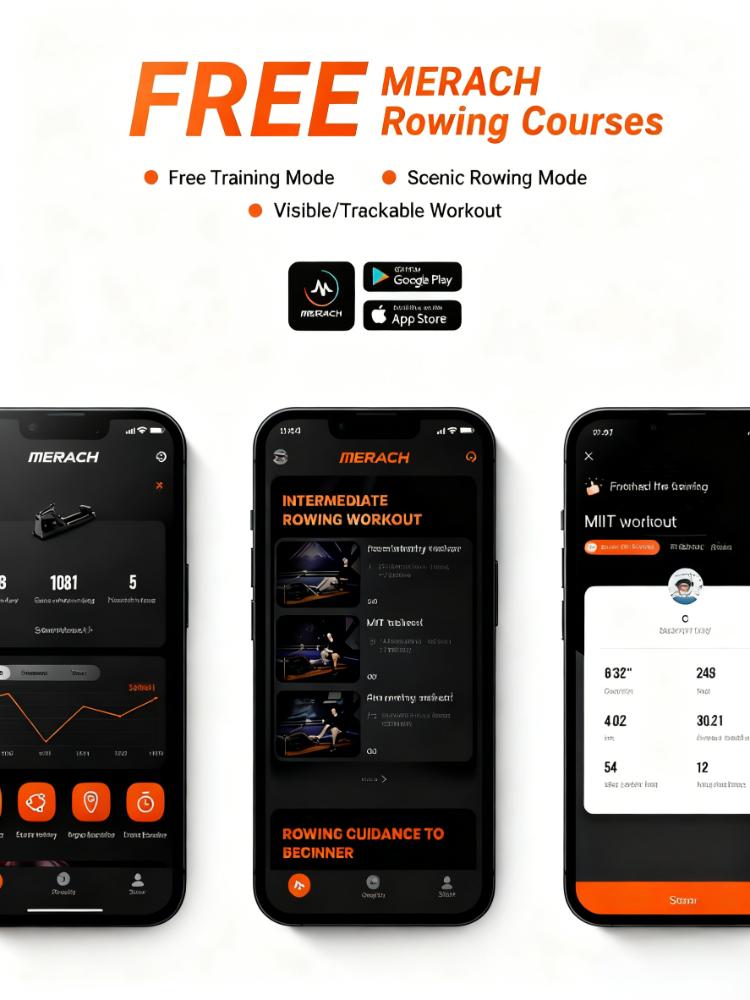 • Comes with free MERACH rowing courses (free training, scenic rowing, trackable workout) via mobile app.