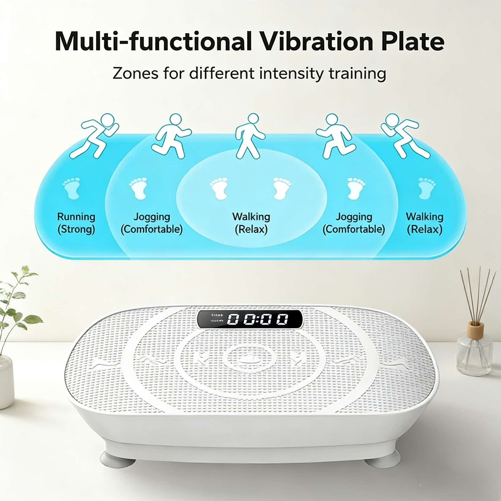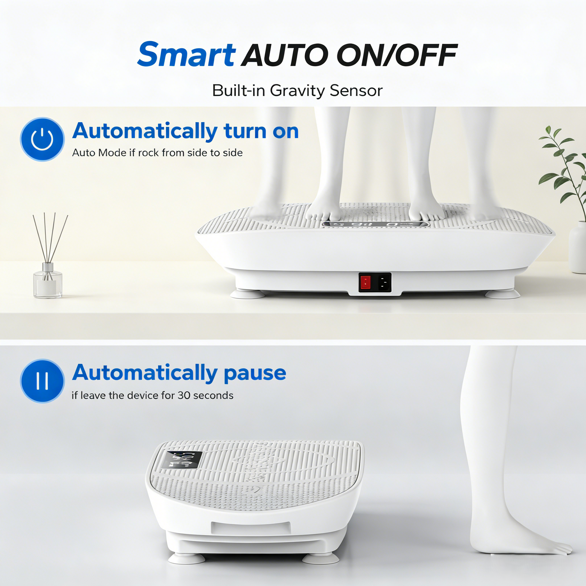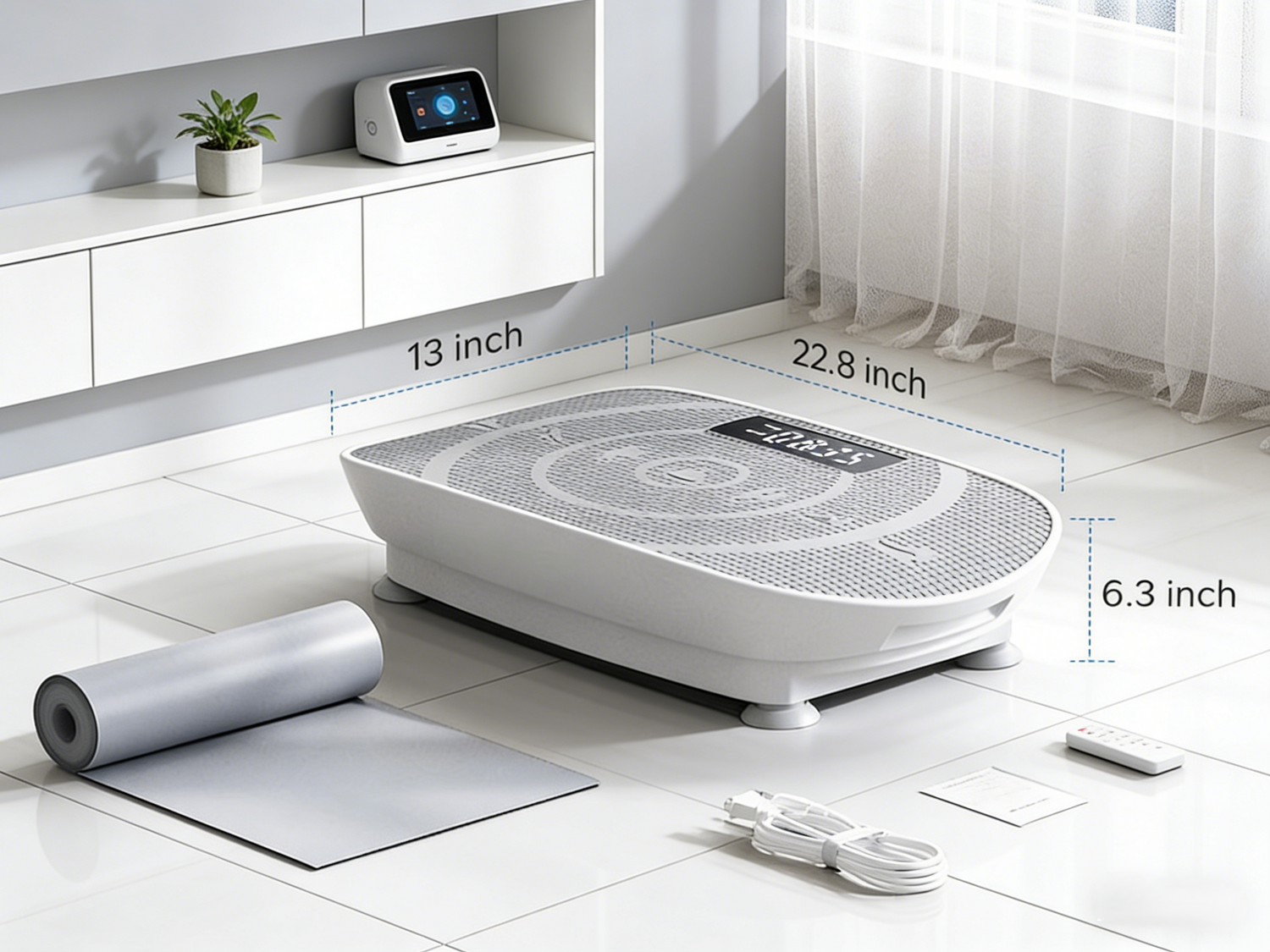 With slim dimensions (20.3" x 11.3" x 4.7"), the VibeFit CV30 vibration plate easily slides under desks or sofas.