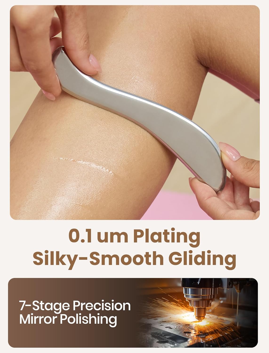 • Gua Sha: Gua Sha releases stagnant energy (chi) to enhance circulation. The mirror-finished Gua Sha Tool glide smoothly without scratching the skin. Compatible with massage oils and lotions for effortless movement, fit for whole body gua sha.